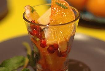 Les Ingrédients -1 grenade-4 oranges-de la menthe fraîche-1 poire-1 banane (option)-1 citronLa Recette