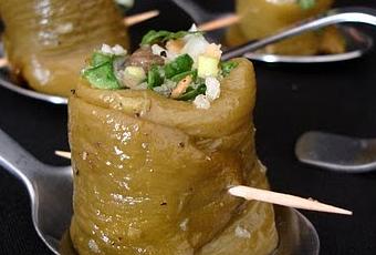 Pour un apéro entre amis, ces paupiettes à base depoivrons, d'ognons et de pousses d"épinards sont faciles