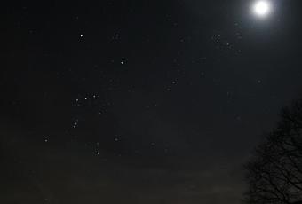 Cela tombait plutôt bien car ces jours-ci, en début de soirée, la lune a rendez-vous avec sept sœurs, filles d'Atlas: Les Pléiades (M45).