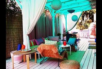 Retour de la belle saison, je repars bientôt vers mes pénates.Quelques idées, très différentes, pour aménager nos extérieurs.À retenir: les voilages, les pots assez hauts et peints, l'accumulation de plantes en monochromie avec le mur, les banquettes fixent et sobres, les tapis coco pour délimiter les espaces...Ouh!!! J'ai hâte...