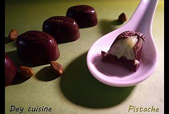 chocolats maison & à la pistache! J'adore cette association alors j'ai réalisé des petits chocolats noirs fourrés avec une crème à la