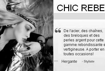 | Je veux un look Rebelle Chic! Un style Rebelle Chic: Autant dire que je m'offre un look très rock appuyé par d'épaisses bottines noires et une coiffure volumineuse. Mes bijoux sont conjugués au chic classicisme des pièces sobres, intemporelles et féminines, pour un résultat versatile et tout-aller, empreint à la fois d'élégance et de personnalité. J'emploie un pantalon de cuir noir ajusté, de multiples bagues, des colliers en surnombre, et encore un chapeau. |