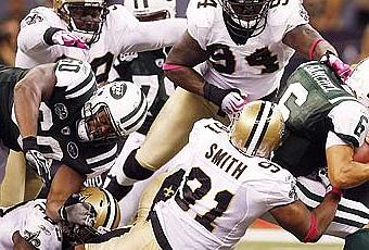 ------En conséquence, le renforcement du Front-4 de la Nouvelle-Orléans apparaît comme LA priorité de l'intersaison, particulièrement avec l'arrivée de la Draft 2011 et de l'incroyable potentiel disponible au poste de Defensive End et Defensive Tackle. Sous la coupe de Sean Payton, les Saints se sont hissés à 2 reprises jusqu'en finale de conférence NFC (2006 & 2009), récoltant respectivement 38 et 35 Sack's, les totaux les plus élevés de la période 2006-2010 avec, en guise de fer de lance, les performances de Will Smith (DE) qui récolte à l'occasion 10,5 et 13 Sack's.Il ne s'agirait donc pas d'accroître fortement le nombre de Sack's par saison, mais d'offrir davantage de soutien à Sedrick Ellis (DT) et Will Smith (DE). En 2010, les Saints de la Nouvelle-Orléans se sont hissés à la 3ème place du classement NFL en terme de Pass Defense, ce qui me laisse à penser qu'accroître légèrement le potentiel de notre Pass-Rush transformerait radicalement le visage de notre escouade défensive. Objectif de la saison 2011 : + de Hurries, + de Sack's, + d'Interceptions? :P