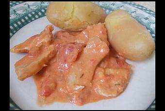 Ajoutez ensuite la crème et la farine pour faire épaisssir la sauce. Servez chaud avec des pommes de terre par exemple.