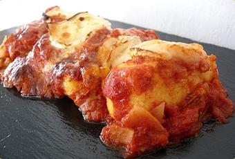Préparer la sauce, dans un bol mélanger le coulis de tomates et le vin blanc. Dans un plat à gratin disposer 4 quenelles, parsemer d’oignon, napper de la sauce. Mettre une tranche de chèvre sur chaque quenelles et saupoudrer de comté.