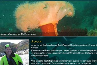 Un nouveau site Internet arrive sur la toile. Denise Téletchéa nous fait partager sa passion pour les fonds sous-marins de Saint-Pierre et Miquelon et nous propose un grand nombre de photos prises lors de ses plongées sous-marines. La mise en ligne de son site est accompagné d’une exposition photos, qui se déroulera à la galerie du centre culturel et sportif. Un grand bravo à Denise et merci de nous faire partager ces magnifiques photos.