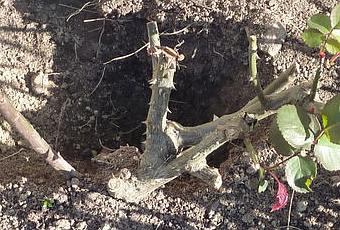 Je peux dire que là l'herbe n'a pas repoussé, d'accord j'ai cassé quelques bourgeons du rosier, mais c'est pas grave, y'en a d'autres des bourgeons. Je suis assez fier de moi, j'ai fait quand même un beau trou, je suis sûr que s'il y avait un concours de trous je gagnerais ! Comme quoi faut pas se fier aux apparences, car même s'il me manque un doigt, ça n'empêche pas les autres de fonctionner !