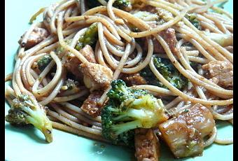 Vous pouvez maintenant laisser les brocolis rejoindre leurs amis les pâtes et le tempeh. Ajoutez un peu de vinaigre et du sel, poivre comment vous voulez.
