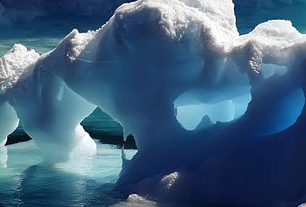 Un iceberg d'une drôle de forme avec "rideau" de glace dans l'Antarctique