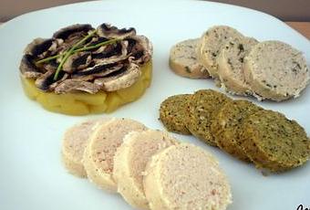 Et j'ai accompagné ces boudins de volaille, de pommes cuites à la vapeur et de champignons revenus à la poêle.