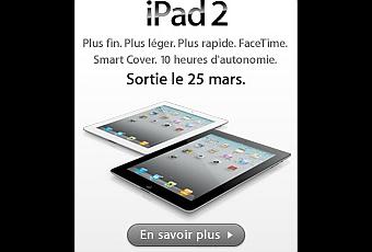 L’iPad 2 sera disponible dès vendredi 25 mars à 17h dans les Apple Store ainsi que les principaux revendeurs Apple (y compris la Fnac et Darty). Les commandes seront quant à elles ouvertes dès 1h sur l’Apple Store.