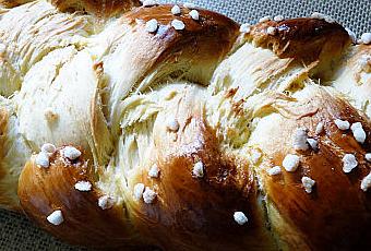 la badigeonner d'oeuf et la laisser encore prendre du volume (environ 30mn) badigeonner d'oeuf battu et de sucre concassé et mettre au four à 180° pendant 20mn