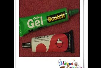 Il y a la colle « à tout faire » (le tube vert) et la colle à bijoux ! On a testé les deux pour se faire une idée et pour vous donner notre avis !