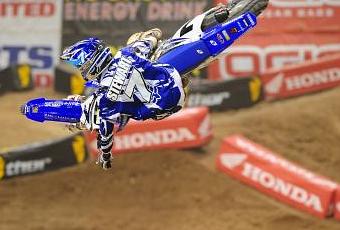 Voici la traduction du communiqué de presse : L’équipe San Manuel Red Bull a connu une nuit décevante à Jacksonville lorsqu’une chute collective après le 1er virage a forcé James Stewart à l’abandon. Il avait pourtant commencé la journée avec le meilleur temps chrono puis avait dominé sa manche qualificative. James était confiant et prêt. Après un bon départ jusqu’au 1er virage, plusieurs pilotes se sont percutés et sa course s’est terminée. Il a tout de suite été examiné par l’équipe médicale Asterisk qui n’a décelé aucune blessure sérieuse. Sonné et courbaturé, Stewart va se reposer cette semaine et se préparer pour la course de Toronto. « J’espérais vraiment gagner celle-là, dit James. J’étais chez moi en Floride, je connaissais bien la piste, tous mes fans étaient présents. C’est très décevant pour moi, mon équipe, mes sponsors et mes fans. Toronto va être important et toutes les dernières courses aussi. » James Stewart est maintenant 4ème au classement général provisoire avec 198 points soit 23 points de retard sur Villopoto.