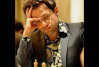 Ronde 10, Levon Aronian remporte son duel à l'aveugle avec les Noirs face à Veselin Topalov dans une défense Ragozine du Gambit Dame, puis annule en rapide © Photo site officiel