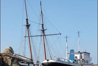 une fois n'est pas coutume, une petite visite chez nos voisins douarnenistes pour saluer un joli couple sur fond de ciel bleu: Courageux et Recouvrance la brestoise sur le slipway du Rosmeur.