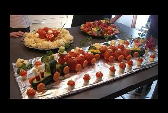 Poser les champignons vénéneux (fait avec des oeufs de cailles) sur le bord du chemin de fer de légumes