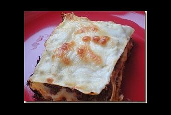 Mettre une couche de béchamel, une couche de pate lasagne remettre une couche de béchamel, une couche de pate à lasagne, une couche de viande, parsemer de gruyère râpé.