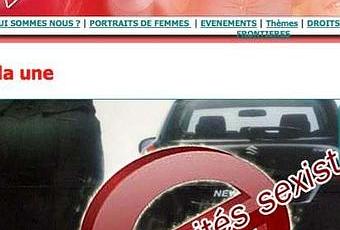 NON A CETTE PUBLICITE SEXISTE QUI DOIT ËTRE RETIREE DES PANNEAUX : une femme sans tête, réduite à son corps, ses fesses mises en valeur, l’assimilation de la voiture à la femme....