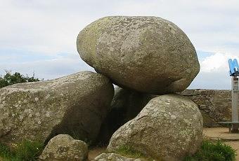 Ce dolmen, au milieu d’un amas de rochers, est érigé sur une très haute falaise, un peu au Nord du Cap de Flamanville et devant une vigie, servant en temps de guerre à loger des personnes employées aux signaux sémaphoriques du littoral de la Manche. on dit qu’il se nomme le trépied et que la falaise porte le nom de la pierre-aurey. Il consiste en 3 rochers, placés en triangle, qui soutiennent un gros bloc informe, arrondi en boule, et élevé d’environ 4 à 5 pieds de terre. Deux de ses soutiens sont à grosses roches, qui n’ont point été érigées et qui font partie du rocher. Une 3ème roche irrégulière, peut-être placée de main d’homme, fait le 3ème soutien. Le rapprochement de ces piliers fait,…