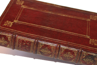 Reliure plein maroquin vieux rouge, dos à nerfs orné aux petits fers dorés, plats décorés d'un encadrement de filets dorés avec fleurons en écoinçons, roulette sur les coupes et en encadrement intérieur des plats, doublures de papier peigne, garde de papier blanc, tranches dorées (reliure de l'époque). Très bon état de conservation de la reliure, très légères marques, intérieur frais, mouillures claires à quelques feuillets, titre légèrement sali. Bonnes marges.