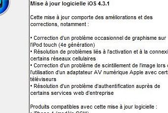 Attendu sous une dizaine de jours selon les dernières rumeurs, iOS 4.3.1 est finalement disponible au téléchargement ce soir.