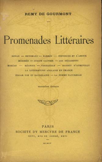 Remy de Gourmont. Promenades littéraires. Renan. - Barres. - Nietzsche et l'Amour. - Mérimée. - Judith Gautier. - Les Décadents... (1).