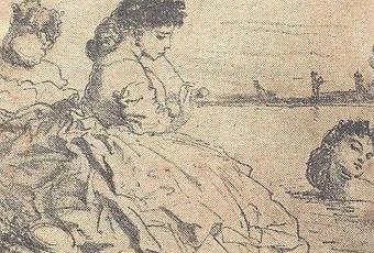 Sans doute, les jeunes femmes qui, dans le dessin du Charivari, s'offrent une partie de campagne sans cavaliers, et dont l'une essaie de fumer la pipe, non sans grâce d'ailleurs, tandis que l'autre prend ses ébats joyeusement dans les eaux fraîches de la Marne, sont des indépendantes qui, déjà, peut-être - si nous en jugeons par la pipe - prétendent aux allures et aux droits de l'homme. Mais ce ne sont point des suffragettes, encore, car leles conservent dans la coiffure, dans la toilette et dans le geste le souci coquet et raffiné du charme de leur sexe.