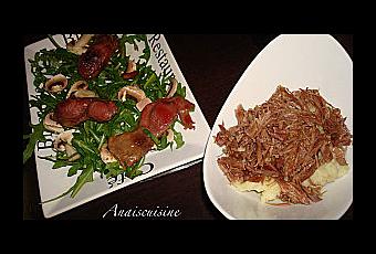Mettre la purée dans de petits ramequins et recouvrir d'effiloché de canard.