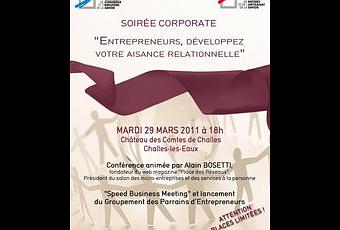 On prend les mêmes et on recommence. Mardi prochain le 29 mars se tiendra au Château de Combes de Challes-les-eaux, la nouvelle Soirée corporate destinée aux entrepreneurs savoyards. Et c'est une bonne nouvelle pour tous les entrepreneurs comme moi qui n'ont pas eu l'occasion d'assister à la précédente soirée Corporate organisée le 3 décembre 2010 et que j'avais annoncé ici même.