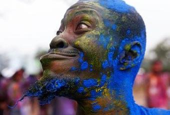 Holi, fête des couleurs en Inde. L'arrivée du printemps fêtée par des jets de poudre de couleurs et d'eau colorée. Une gigantesque cour de récréation version grandes personnes. Les fleurs du printemps au coeur de batailles de couleurs. Le début du printemps aspergé sur les visages et les corps.