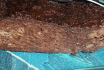 Couper de petits morceaux de pain jusqu'à obtenir une préparation pas trop compact quand même, laissez le pain bien se détrempé puis ajoutez la quantité de cacao que vous désirez.