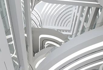 C’est la furie lumineuse dans le nouveau centre commercial construit par UN Studio (Hollande) à Cheonan (Corée du Sud). Naturelle ou artificielle, blanche ou colorée, fixe ou mobile, dedans ou dehors, la lumière dans tous ses états ferait presque passer Joe-le-Maxxi de Zaha Hadid à Rome pour un austère sortis des cartons du plus austère bureau d’architecture Est-Allemand. Il faudrait y aller pour voir… Ajoutons donc que si les intérieurs sont peints en blanc, c’est pour laisser passer la lumière naturelle bien sur.