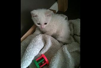 Flocon est tout juste sevré... inutile de préciser qu'il est encore bien fragile et bien grelottant. Mais je pense que cela va vite lui passer!