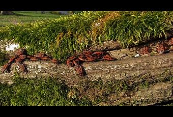 "Plus c'est long, plus c'est bon" ! Chez cet insecte de la famille des punaises, ça dure 30 heures : ça doit être drôlement bon !On les appelle ainsi à cause parait-il des anciens uniformes des gardiens de la paix, mais aussi "Soldat", Suisse", "Punaise rouge", "cordonnier", "Diable cherche-midi". Quant à leur doux nom scientifique, c'est "Pyrrhocoris apterus".