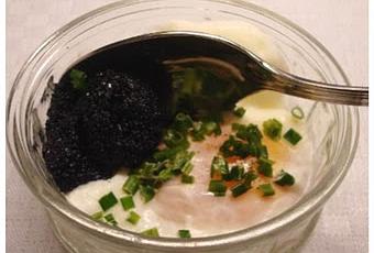 Préparation environ 1/4 d'heure / Cuisson 3 à 4 minutesIngrédients par personne :· 1 œuf· 2 cuillères à café de crème fraîche· 1 à 2 cuillères à café d'œufs de lump· sel, 1 pincée de poivre· un peu de ciboulette ou de persil· 1 cuillère à soupe de vinaigreMettez de l'eau dans une sauteuse au tiers de la hauteur avec le vinaigre. Quand l'eau bout, baissez le feu de façon à ce que cela frémisse seulement; cassez l'œuf dans une tasse un peu évasée et tout doucement faites-le glisser le long de la paroi de votre sauteuse. Laissez-le cuire 3 à 4 minutes. Récupérez-le avec une écumoire, égouttez-le et mettez-le dans un ramequin ou dans une coupe. Avec une feuille de papier absorbant, épongez l'eau s’il y'en a. Assaisonnez-le avec un peu de sel et une pincée de poivre, ajoutez la crème, puis les œufs de lumps et parsemez la ciboulette ou le persil. Mettez au frais en attendant de servir.