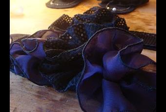 Collier-écharpe, ceinture, accessoire de tête et broches.