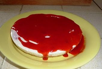 Mettre 4H ou une nuit au frais. Démouler en soulevant le film plastique. Servir avec le coulis de fraises fait avec le reste des fraises , du citron et du sucre (passé au tamis).