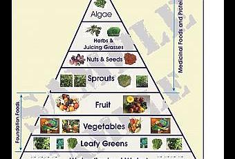 J'aime bien ces éléments qui recadrent (ou pour être moins totalitaire donnent des bases), voici une pyramide alimentaire que Julie du blog Tout cru dans le bec proposait sur le forum du crudivorisme, c'est toujours un élément de base, avant de reprendre les éléments pour mettre encore plus de cru dans l'assiette.