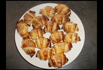 Idée : Vous pouvez remplacer ces ingrédients par du surimi et du boursin, qui se marient très bien. Et (idée de Steph !) pour distinguer les croissants les uns des autres, recouvrir ceux au boursin de graines de pavot !