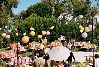 L’ombrelle chinoise est ici associée au lampion chinois en papier: les mariés ont un véritable coup de coeur pour ce duo ombrelles et lanternes en papier: dont les couleurs et les tailles varient. En decoration d’un jardin, les lanternes en papier roses jaunes pales, orangé et vertes sont hyper jolies! Associées aux ombrelles en papier pastels: ces lanternes égayent le coin repas, situé dans le jardin!