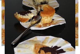 Déposer une cuillère à café du melange au caco puis du mélange nature et ainsi de suite jusqu'au 3/4 des caisettes.