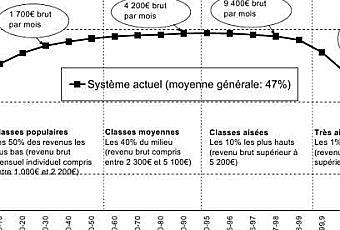 - le système fiscal actuel est faiblement progressif jusqu’au niveau des « classes moyennes »,
