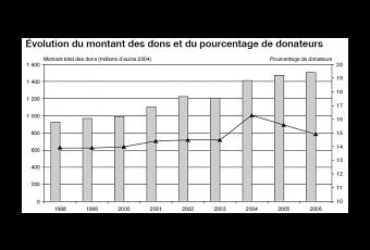 Les incitations fiscales suffisamment efficaces ? 2 réformes, intervenues en 2003 et 2005, ont augmenté de 32 % le taux de réduction d'impôt sur le revenu pour les dons destinés à des organismes d'utilité publique ou d'intérêt général. L'Insee a consacré en mai 2010 une étude à l'estimation de la générosité des français, soit 1,7 milliards en 2007 et à l'évolution des dons, concluant que les Français ont peu réagi à l'augmentation des réductions en faveur des dons, avec une augmentation de seulement 6% des dons de faibles montants et de 18% des dons les plus élevés. Pourtant, la majorité des ménages français sont au courant des incitations fiscales : Une étude menée par le Centre de Recherches et d'Études sur la Philanthropie (CeRPhi) pour le compte du Secours Catholique montre de plus que la quasi-totalité des donateurs (respectivement 98 % et 92 % des donateurs imposables et non imposables) connaissent le dispositif. En 2010,12% des donateurs déclaraient tenir compte de ces avantages contre 10% en 2009. Chez les cadres,la proportion est même passée de 11% à 25%.