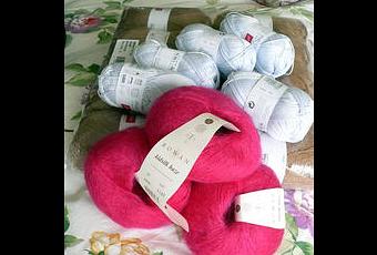 La laine beige sera pour un pull destiné à Hugo, le coton bleu très pâle se transformera en Gilet d'été pour Apolline, les trois pelotes de mohair et soie......deviendront un châle arachnéen pour moi. C'est Claude qui a choisi la couleur, et je n'ai pas intérêt à me planter vu le prix de chaque pelote.