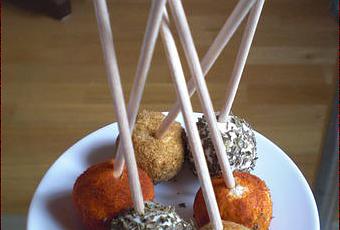- Faites des p'tites boules de chèvre avec vos mains piqué les avec le pique en bois.