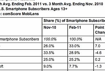 Google vient de fêter une annonce qui lui a fait très plaisir car ils viennent de passer avec leur plateforme Android devant l’iOS de l’iPhone d’Apple. L’étude vient tout juste de tomber, en Novembre 2010, Google avait 26% de PDM, Apple était juste derrière avec 25% de part de marché, mais c’était encore RIM (Research In Motion) de Blackberry qui menait la danse avec 33,5%. Aujourd’hui, au mois de Février, pour certains il y a eu beaucoup d’évolutions, pour d’autres, difficile d’en dire autant, avec notamment, des résultats fortement en baisse …