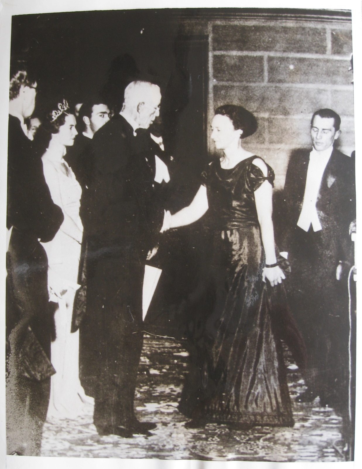 PHOTOGRAPHIE DU ROI DE SUÈDE FÉLICITANT IRÈNE CURIE.Photographie originale de l’agence « International news photos » datée du 20 décembre 1935. Cette photo a fait la page de titre du journal L'Illustration du 21 décembre 1935.