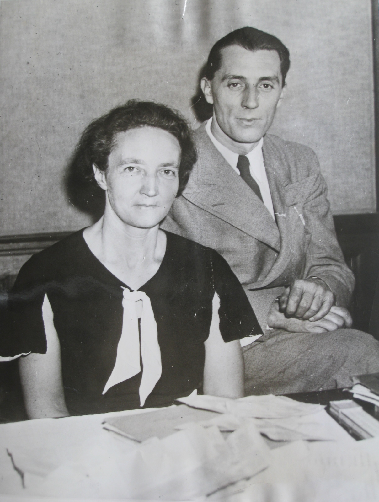 PHOTOGRAPHIE DU COUPLE.Photographie originale de l’agence « International news photos » datée du 25 novembre 1935 montrant le couple recevant les télégrammes de félicitation pour leur prix Nobel.