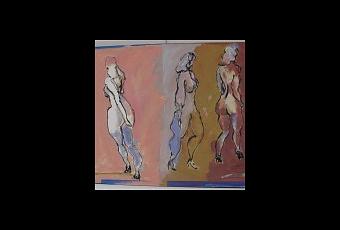 Premier étage: des dessins qui saisissent l’essentiel du corps, sans fioritures. (On pense à Matisse). Et puis encore des toiles au geste pictural plein de fougue, à la grande vivacité de trait. Toujours des femmes aux formes déformées…Pour dire qu’elles dansent, tournent, se balancent, s’allongent, courent…